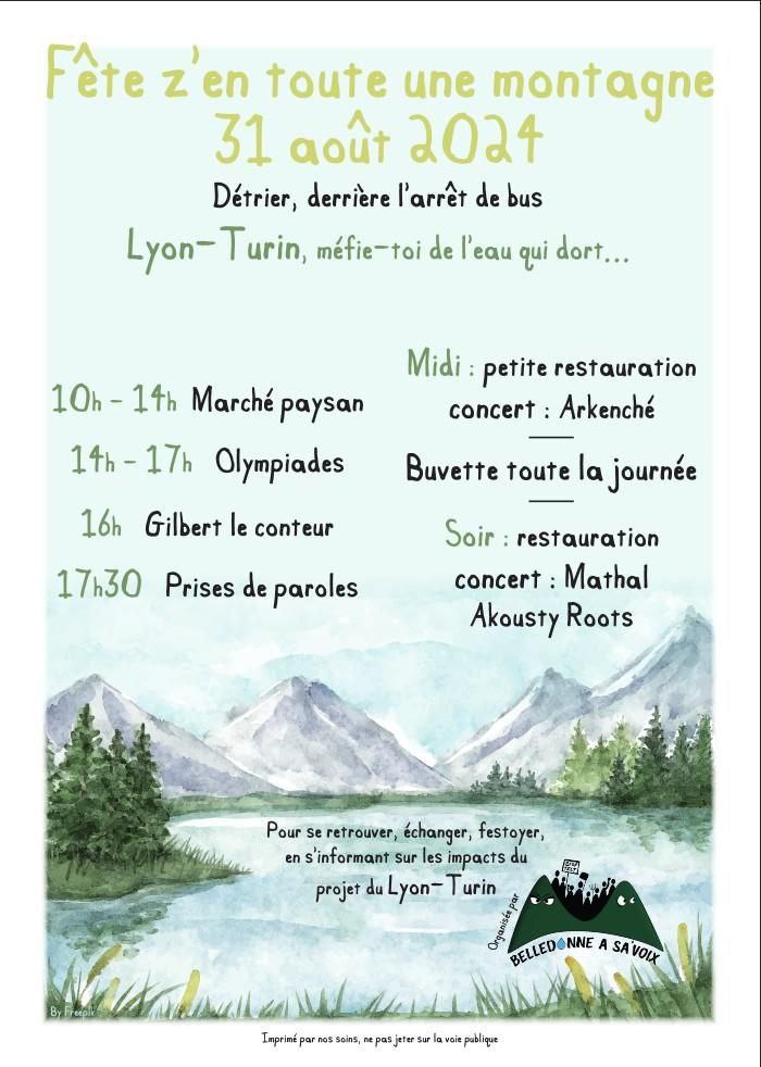 "L’association Belledonne A Sa Voix, qui œuvre depuis janvier 2024 à informer sur les potentiels impacts des chantiers du Lyon-Turin, organise le samedi 31 août une journée festive et familiale, pour petits et grands à Détrier !