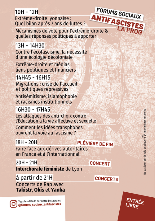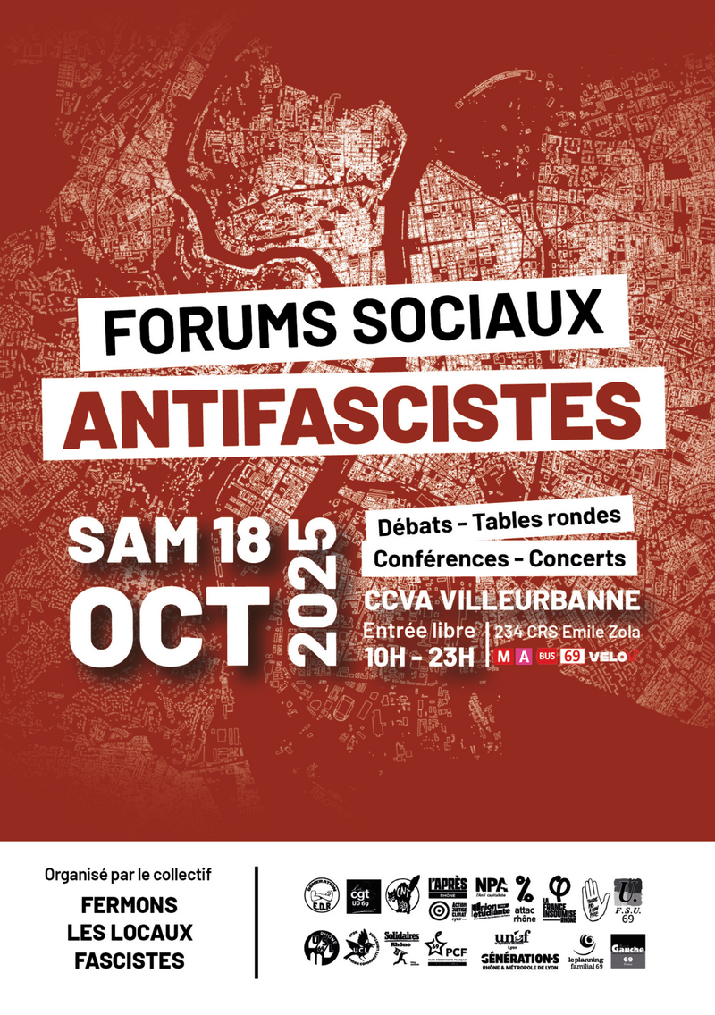 Programme des Forums Sociaux Antifascistes samedi 18 octobre à Villeurbanne