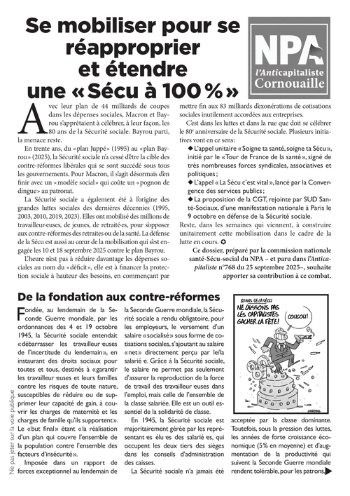Pour les 80 ans de la Sécu, le point de vue du NPA :
