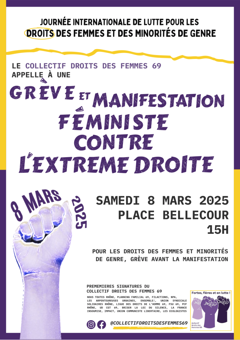 Rejoins le cortège du NPA l’Anticapitaliste à la manif dimanche 8 mars à Lyon !