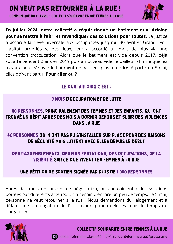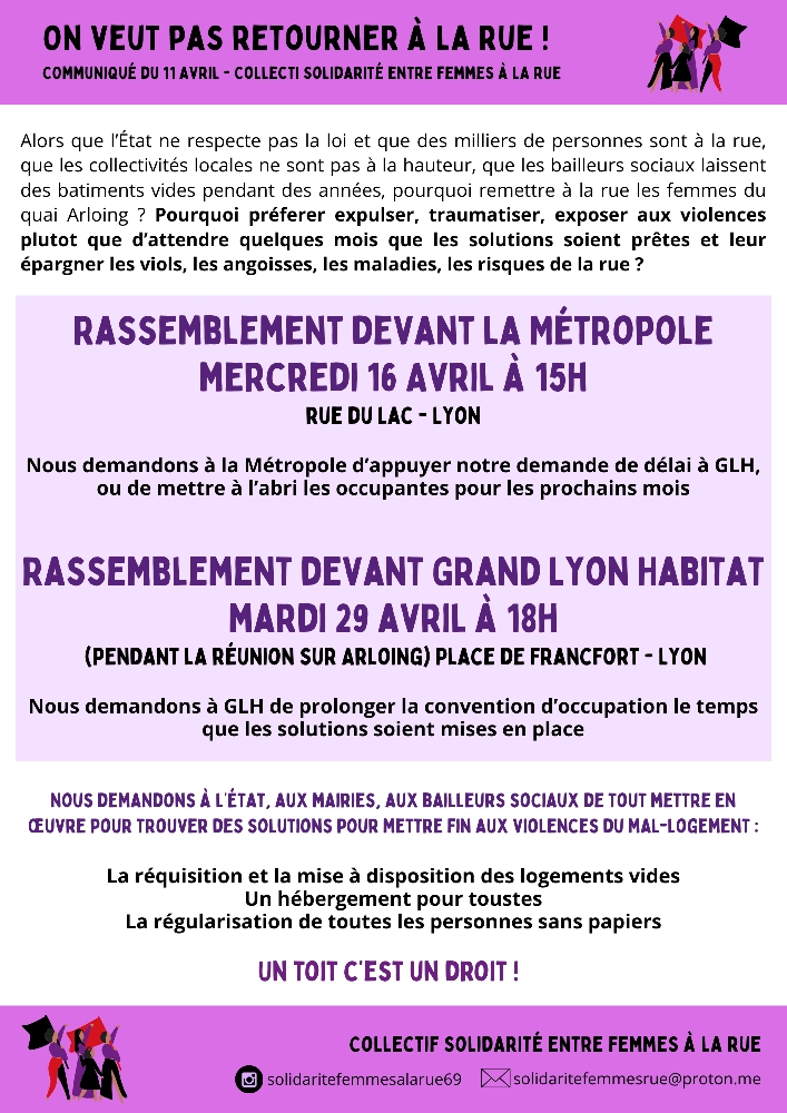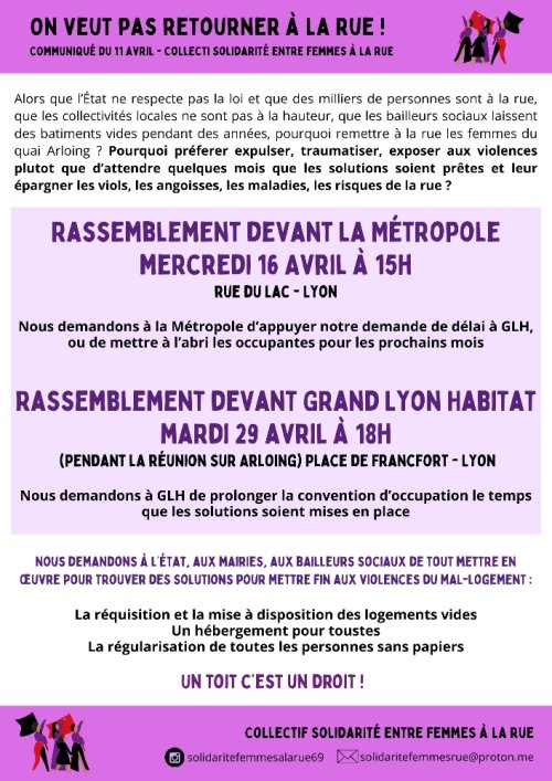 On veut pas retourner à la rue ! Rassemblement mercredi 16 avril