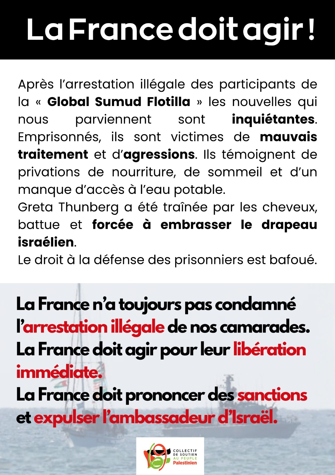 Rassemblement à Lyon lundi 6 octobre pour la libération des otages de la flotille