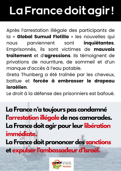 Soutien à la flotille : rassemblement samedi 4 octobre à Lyon
