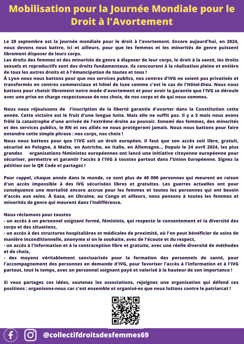 Rassemblement samedi 28 septembre pour un droit effectif partout à l’IVG