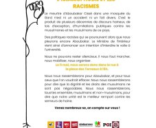 Combattre l’islamophobie, une urgence vitale Il s’est levé tôt pour nettoyer la mosquée de La Grand-Combe avant la prière du vendredi. Un inconnu est entré, lui a demandé de lui apprendre la prière et l’a brutalement assassiné d’une cinquantaine de coups de couteau. Il s’appelait Aboubakar Cissé. Et ce 28 avril 2025, l’islamophobie l’a tué. Le NPA exprime sa profonde tristesse et sa colère après cet attentat islamophobe. Nos pensées vont aux proches de la victime, (…)