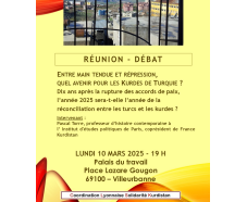 Communiqué de la Coordination Lyonnaise Solidarité Kurdistan : Ce qu’il est convenu d’appeler « la question kurde » agite la Turquie depuis des décennies. Pour répondre à l’oppression, le PKK (Parti des Travailleurs du Kurdistan) a livré une guerre à l’État turc. Au cours de cette guerre civile, l’armée turque a rasé des milliers de villages kurdes et fait plus de 40 000 morts.