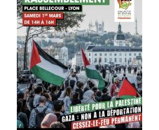 Ensemble pour que la Palestine vive ! rassemblement samedi 1er mars place Bellecour LYON de 14h à 16h