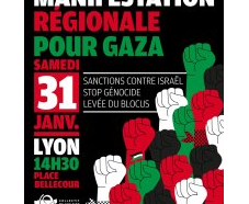 Le Collectif 69 de soutien au peuple palestinien consacre les 2 semaines à venir à mobiliser pour cette manif, qu’il souhaite régionale. Il n’y aura pas d’autre initiative de rue avant le 31 janvier.