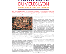 " MANIFESTE DU VIEUX-LYON D’AUJOURD’HUI POUR DEMAIN Terre d’accueil, le Vieux-Lyon est un territoire de la Ville où se construit, autant qu’ailleurs, la société de demain, et qui ne s’accommode pas de toute volonté d’appropriation et de violences extrémistes. Son héritage, vecteur de paix, fait de ce quartier un lieu ouvert à tout le monde et ouvert sur tout le monde.