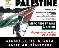 RDV pour le cortège en solidarité avec la Palestine devant la Manufacture des tabacs, cours A. Thomas