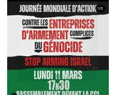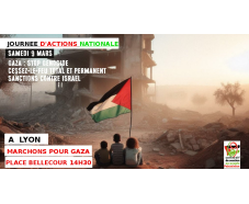 Le Collectif Palestine 69 répond à l’appel à la journée nationale d’actions et de manifestations du 9 mars, en organisant une manif à Lyon ;