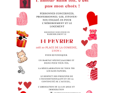 "Le collectif hébergement en danger appelle à un rassemblement le 14 février 2024 à 18h30 pour le droit à l’hébergement et au logement, place de la comédie à Lyon 1er, et revendiquer :