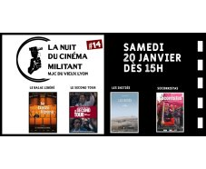 "Pour la 14ème édition, retrouvez la Nuit du cinéma militant, événement emblématique de la programmation culturelle de la MJC du Vieux Lyon. Au programme, la projection de 5 films en présence de leurs réalisateur.trice.s pour une soirée de d’échanges autour de sujets d’actualité. Rendez-vous le samedi 20 janvier 2024 à partir de 15h. 1 soirée, 4 rencontres !